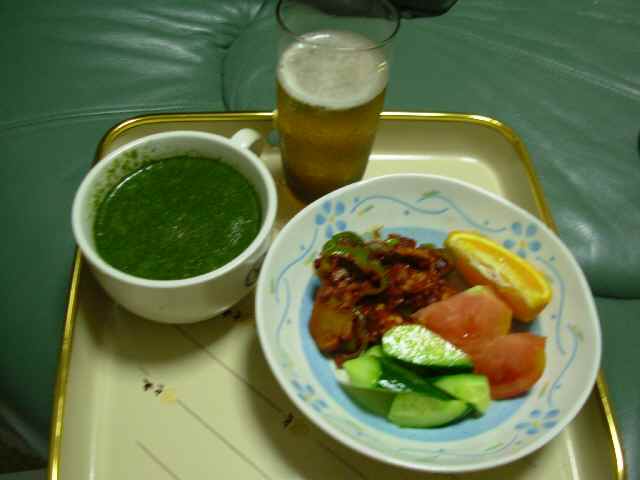 それにこの緑色のソファが巨大(前の家では 大きく見えなかったんだけど 今のトコでは 部屋に入っただけでも奇跡って感じ・・・)だもので テーブルが一緒の場所に置けなくって 最近はもっぱら このソファの上をテーブル代わりにしちゃってたりの情けない状態です・・・。早く ちゃんと座って ゆったりご飯食べた~い。
