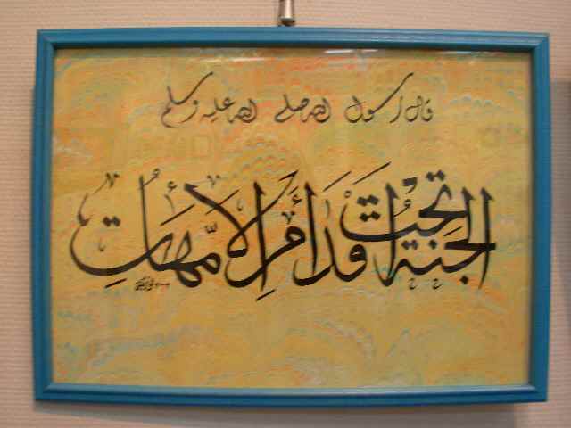 内容はアラブの人々の好きな名句で”天国は母の足の下にある”(お母さんを大切にしないと 天国へは行けないよ!っていう感じですかね)という文です。