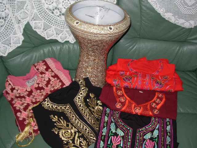 さてさて 何を着ようか考え中。去年はヨルダン製のピンク色のカフタン(アラブのドレス・写真の一番左に写ってるもの)にしたら とってもカワイイとお声をかけていただいたんだけど、今年はどっしよっかなぁ~?