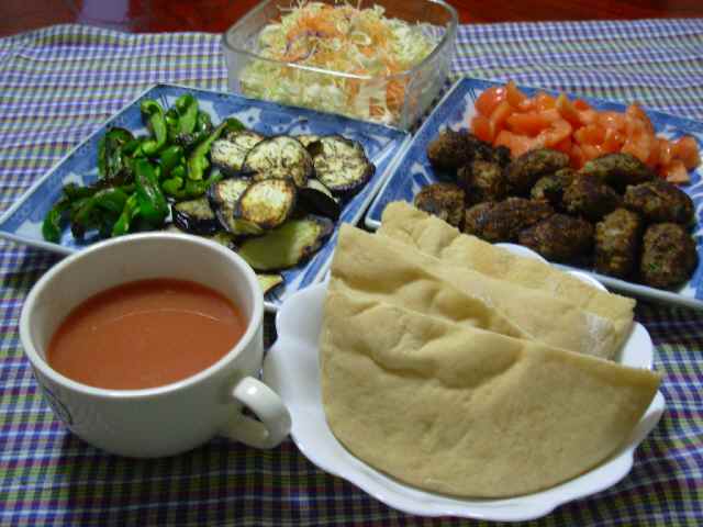 やっぱり前の台所と使い勝手が違うし 保管場所がわからなくって 手際がイマイチ。こんだけ時間があれば いつもだったら ピタパンから焼いちゃうんだけど、挫折。買ってきたものにしちゃいました^^; スープもトルコで買ってきたクノールのトマトスープ。・・・とかなり手抜きでしたが、とても美味しかったです