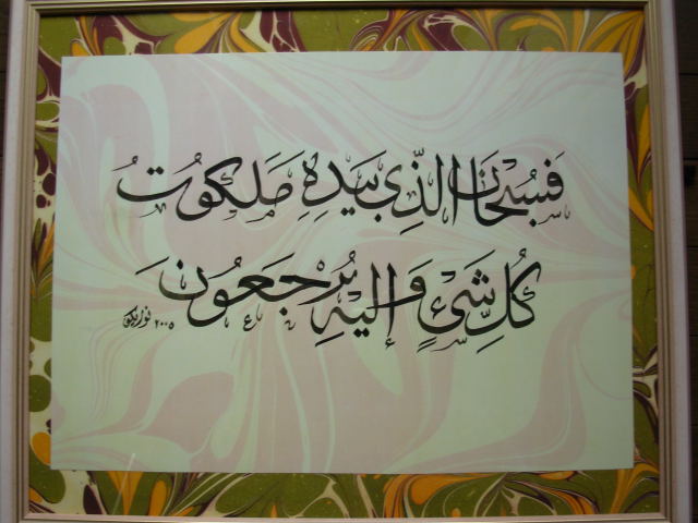 昨日は家に帰ってから 今月26・27日に行われる ギャラリー蓮で開催されてる陶芸家 今泉 卓氏の個展期間中の特別イベント”アラビアの器作りとエジプトを楽しむ”に貸し出しするアラビア書道作品を、押入れの中やら何やら ゴソゴソゴソゴソ なんとか8点引っ張り出してきました。